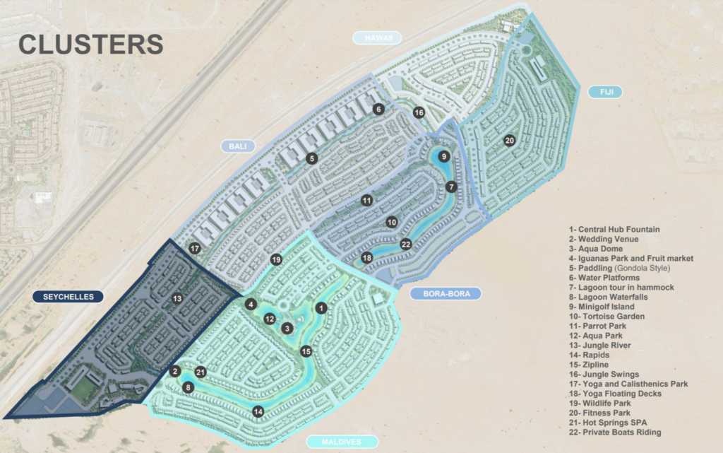 Overview: Damac Lagoons is a newer, water-inspired community designed to replicate the charm of Mediterranean destinations like Santorini, Venice, and Costa Brava. The development offers a resort-style living experience with crystal-clear lagoons, sandy beaches, and themed architecture.